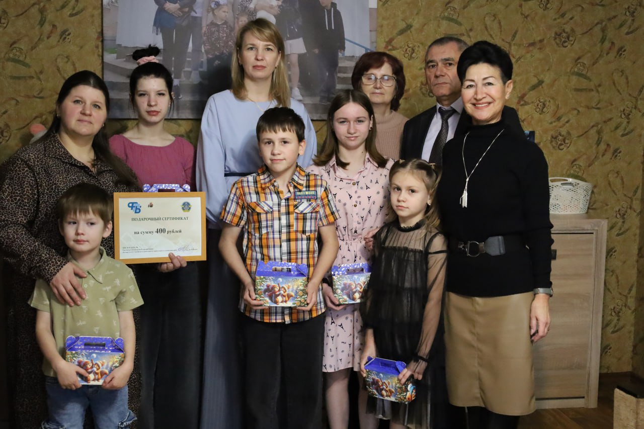 Сертификат на эту сумму передан многодетной приемной семье Надежды Ширяевой. Директор СПЦ Анастасия Рублик с педагогом-психологом Мариной Стеценко и спонсорами посетили многодетную семью. Гостей радостно встречали дети: Катя, Марина, Дима, Настя и Арсений. Старшие немного смущались, зато шестилетний Арсений показал все, на что был способен. Охотно прочитал стихи про Дедушку Мороза, а потом спел Государственный гимн. Его подхватили все гости. Маленького Арсения похвалили и назвали настоящим патриотом. У мальчишки светились от гордости глаза, и он охотно рассказывал, какая у них замечательная мама, пригласил посмотреть наряженную елочку, где все вместе и сфотографировались на память.