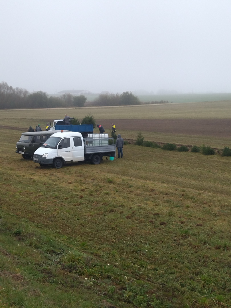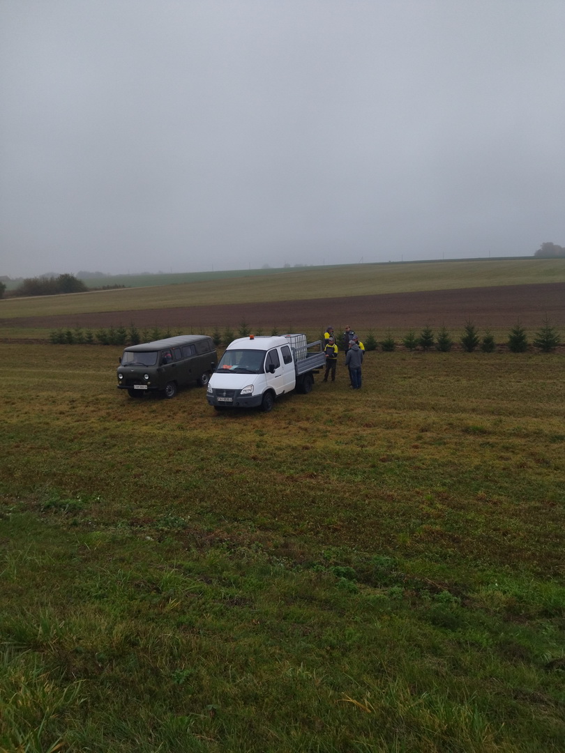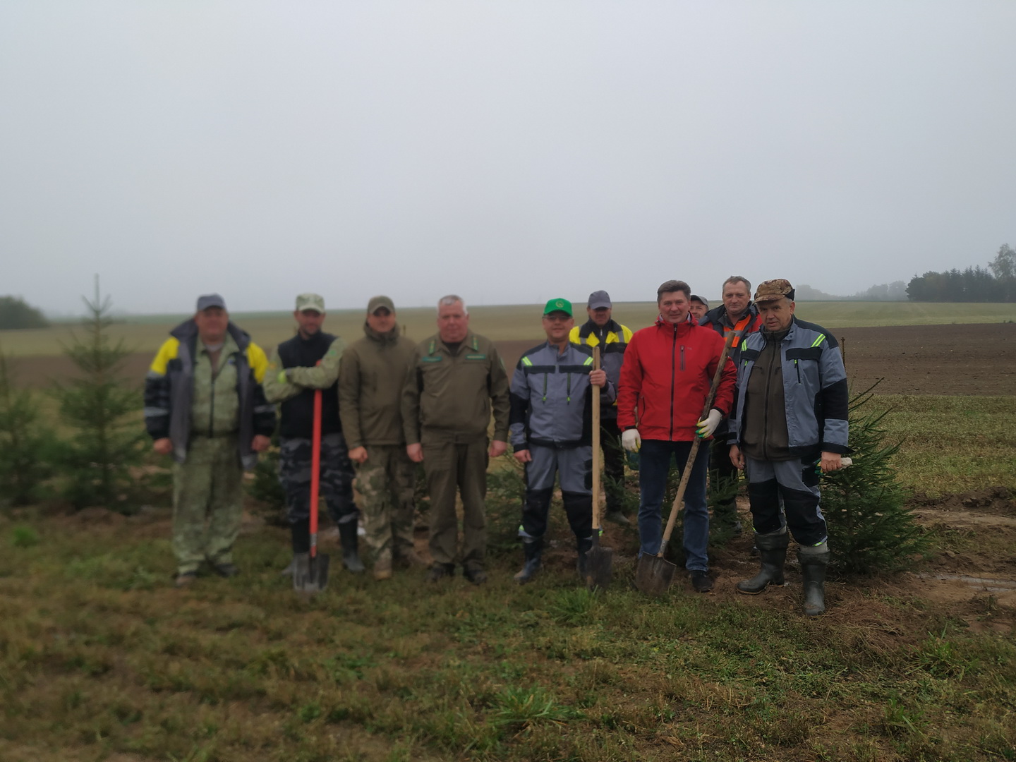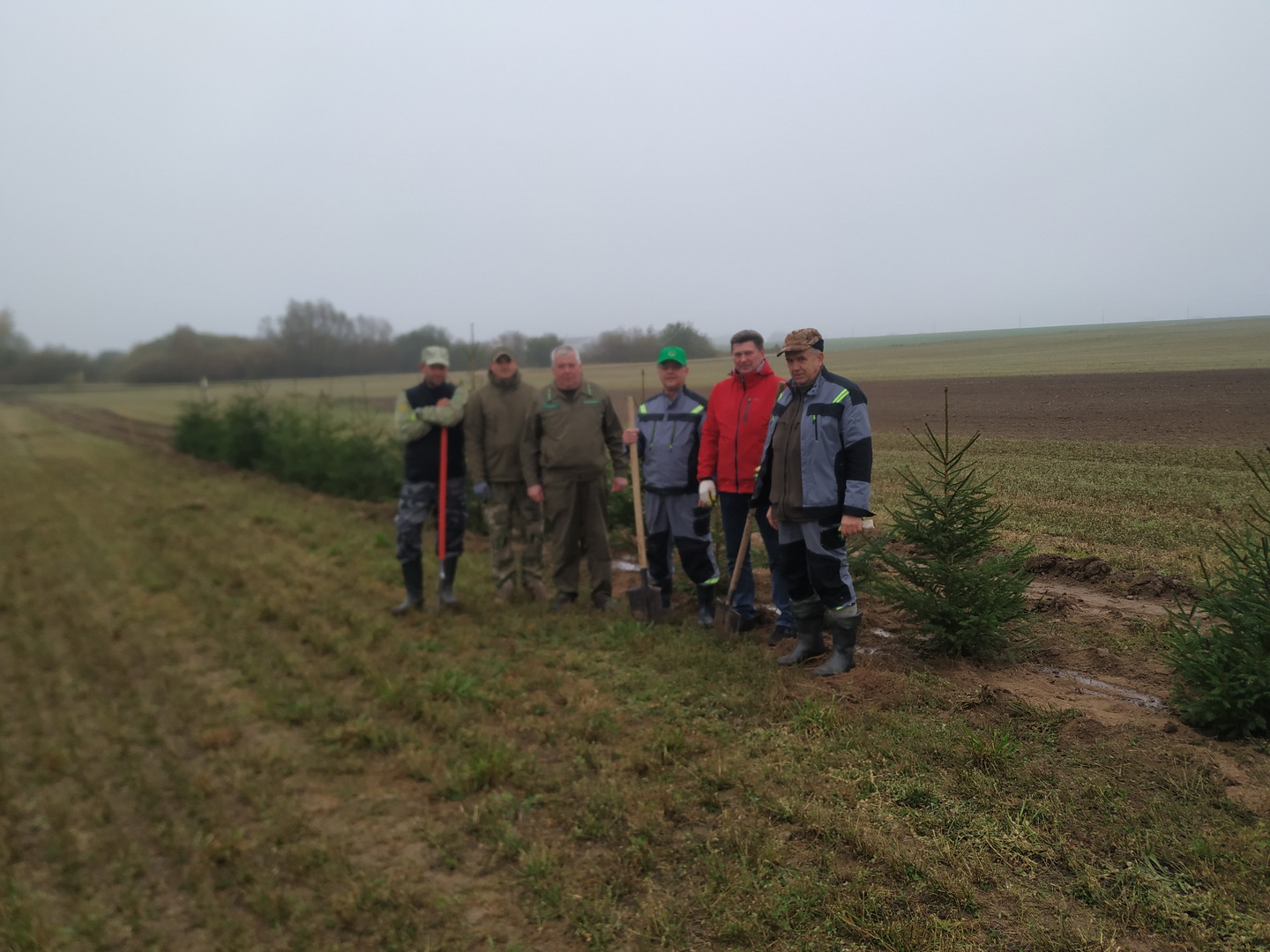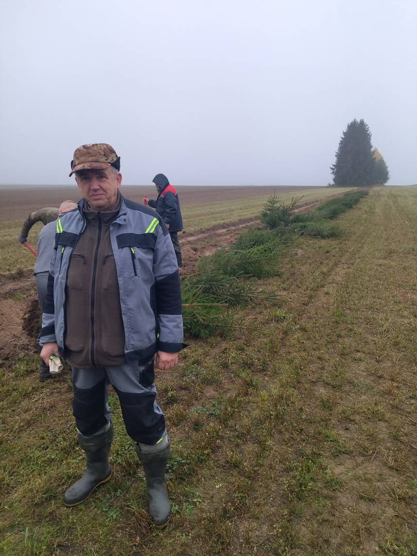 11.10.2025 на автомобильной дороге Гродно – Сопоцкин была выполнена посадка елей в придорожной полосе.
